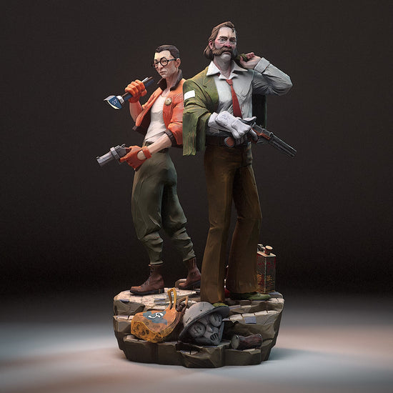 Harry & Kim set from Disco Elysium, ready to 3D print on a shared base. Includes STL & pre-supports.